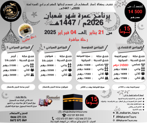 برنامج عمرة شعبان 2026 من المغرب - 15 يوم (يناير)